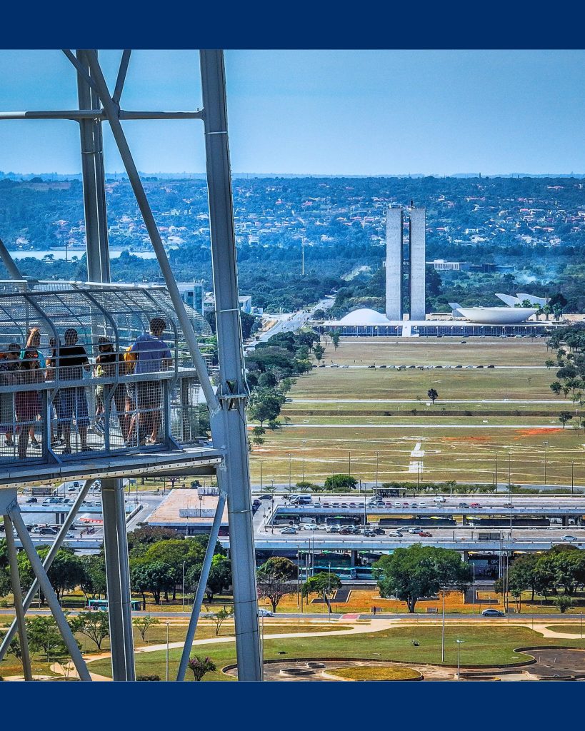 O mirante da Torre de TV BRB, situado a 75 metros de altura, é uma parada obrigatória para quem visita Brasília e deseja compreender verdadeiramente a disposição urbana da cidade.
